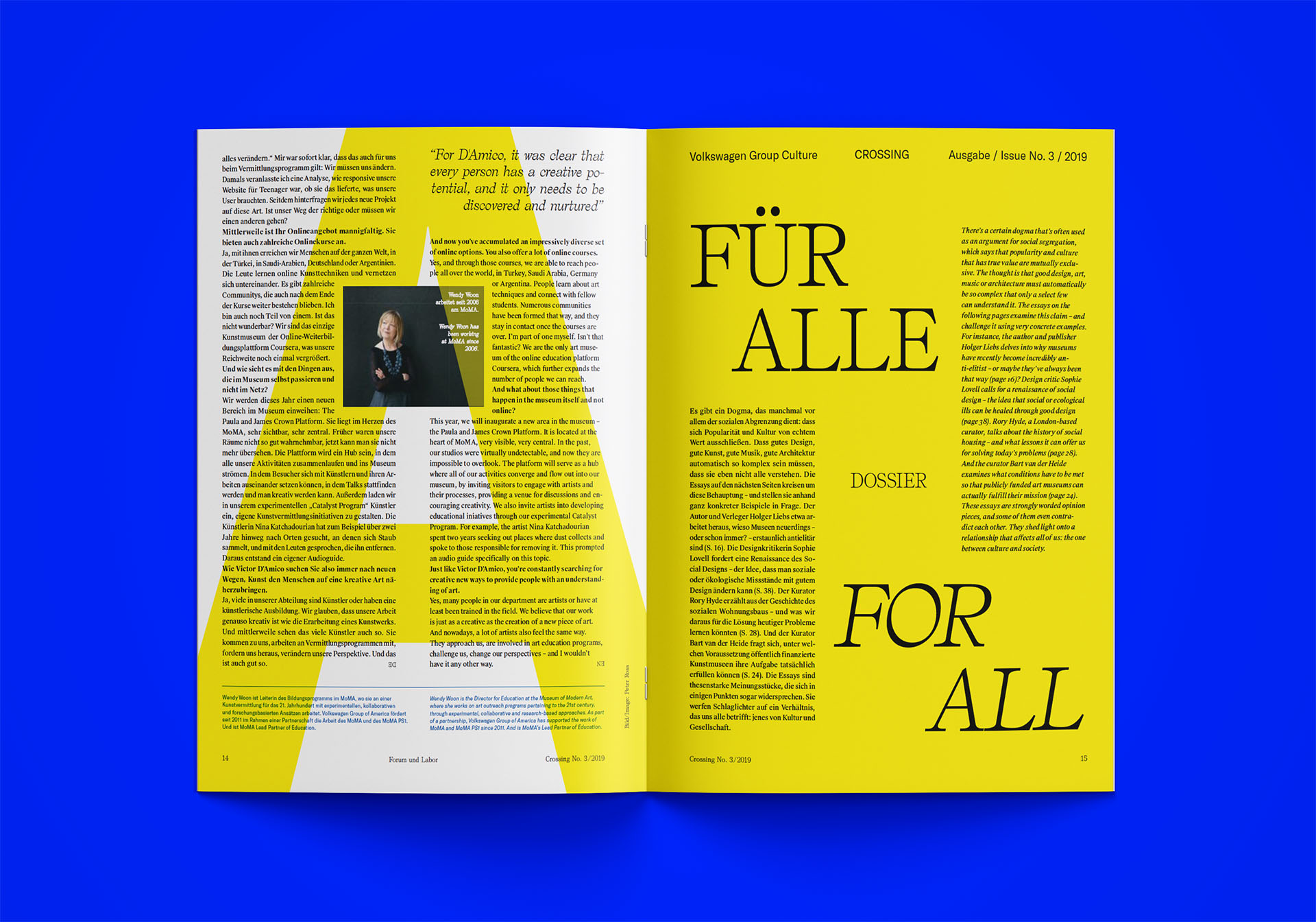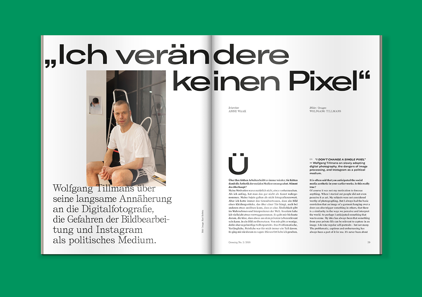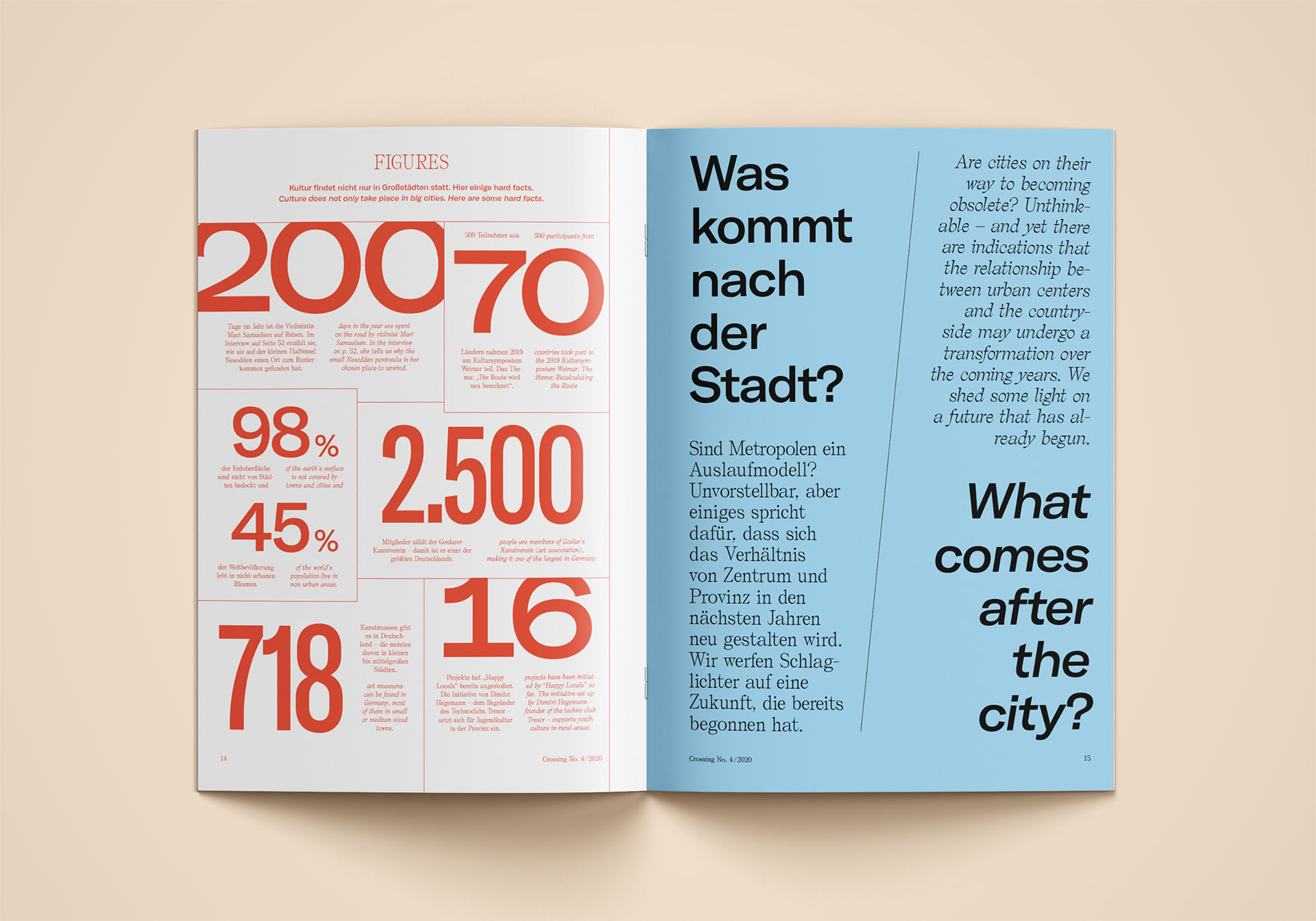 Initiated by Volkswagen Group Culture, Crossing is a bilingual, biannual magazine that explores global perspectives in art, music, media, and discourse. Together with our beloved editorial agency Nansen & Piccard, Alexis Zurflüh from ÉTÉ STUDIO led the art direction over several years.