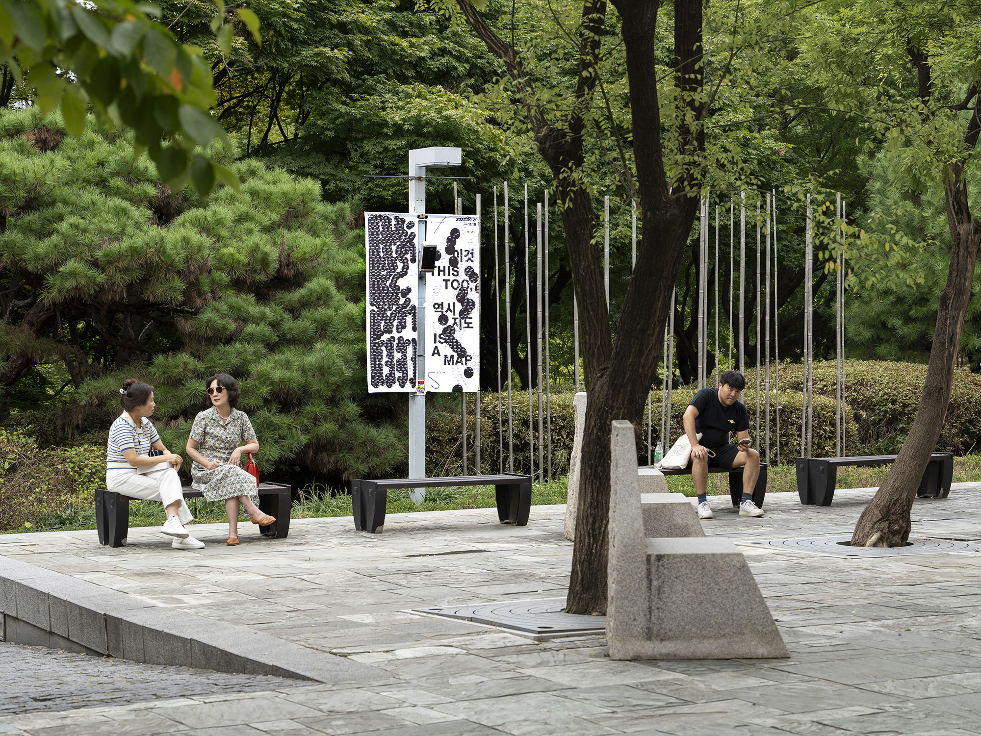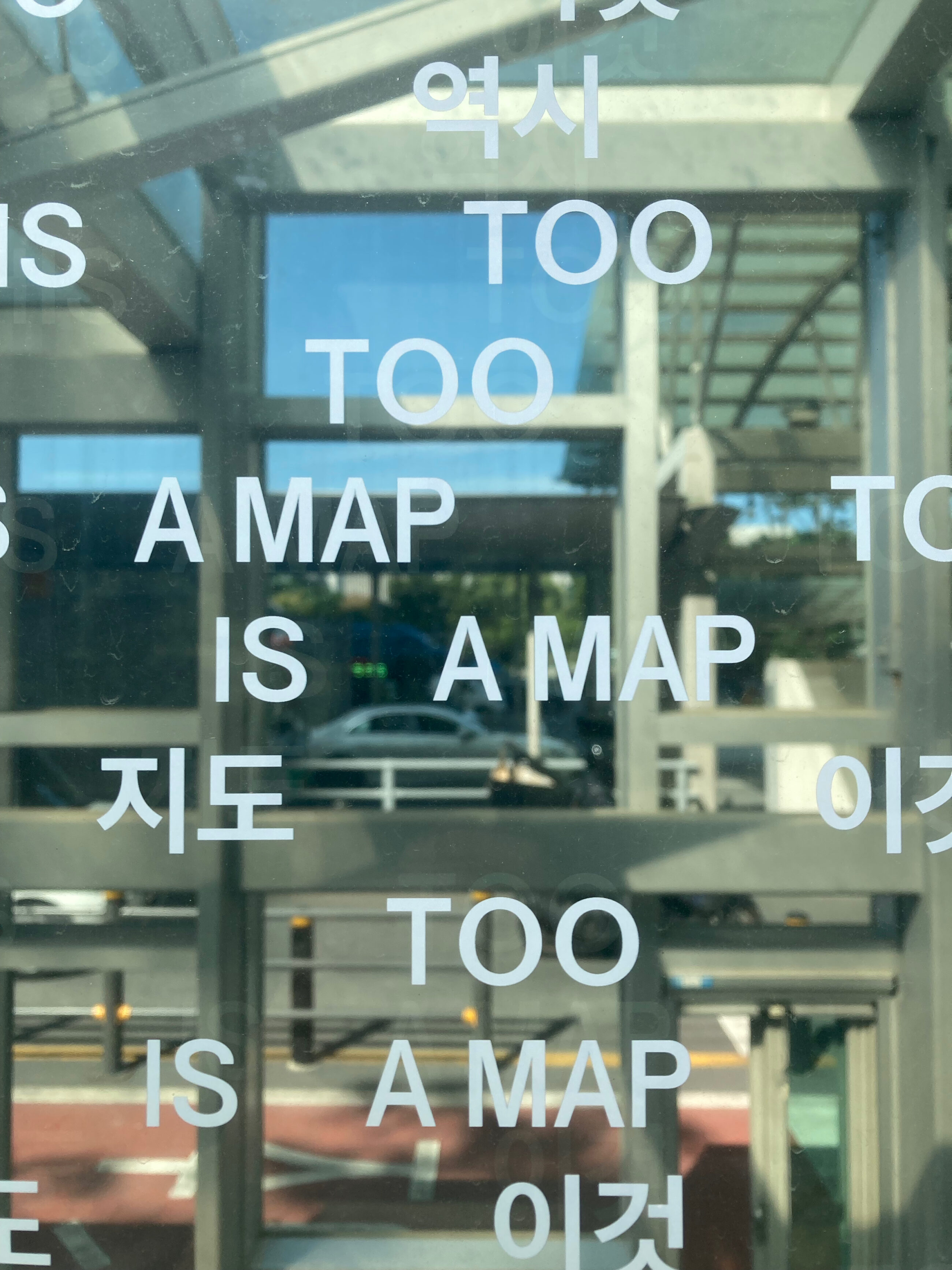 The concept began with the ambition to play with Korean and English—blurring the line between two languages and writing systems, and exploring new ways of reading. Repetition shaped typographic patterns, while coordination and cartographic codes (the dots) introduced a rhythm of navigation. What emerged was a cryptic mapping, a layered legibility.