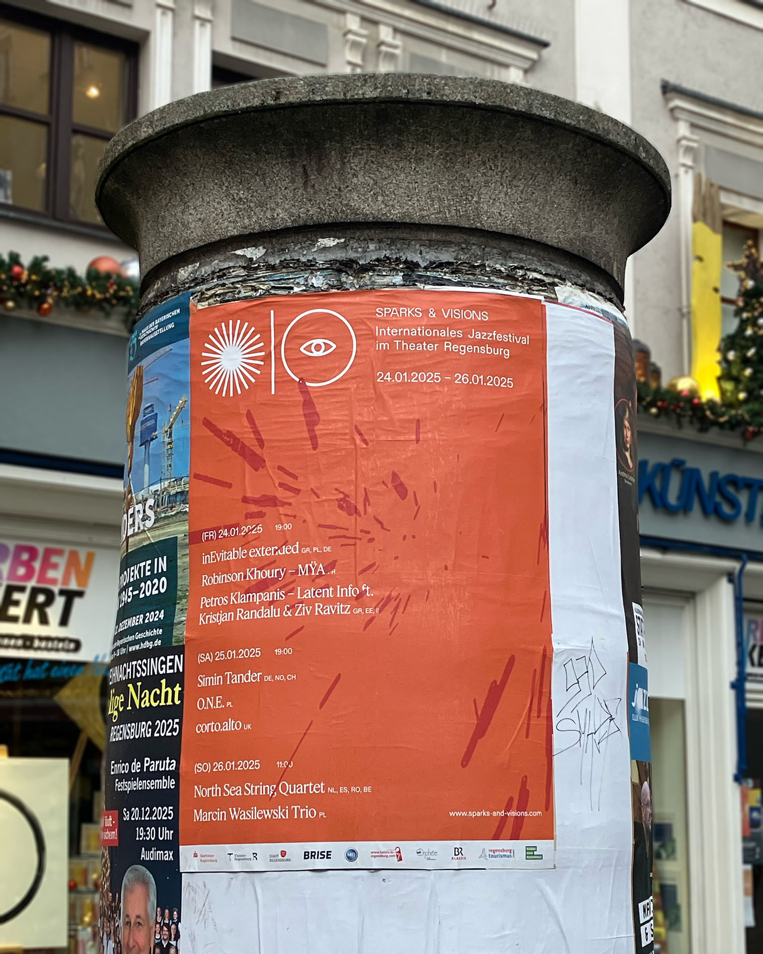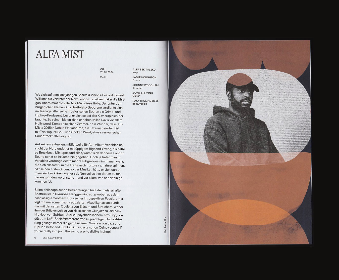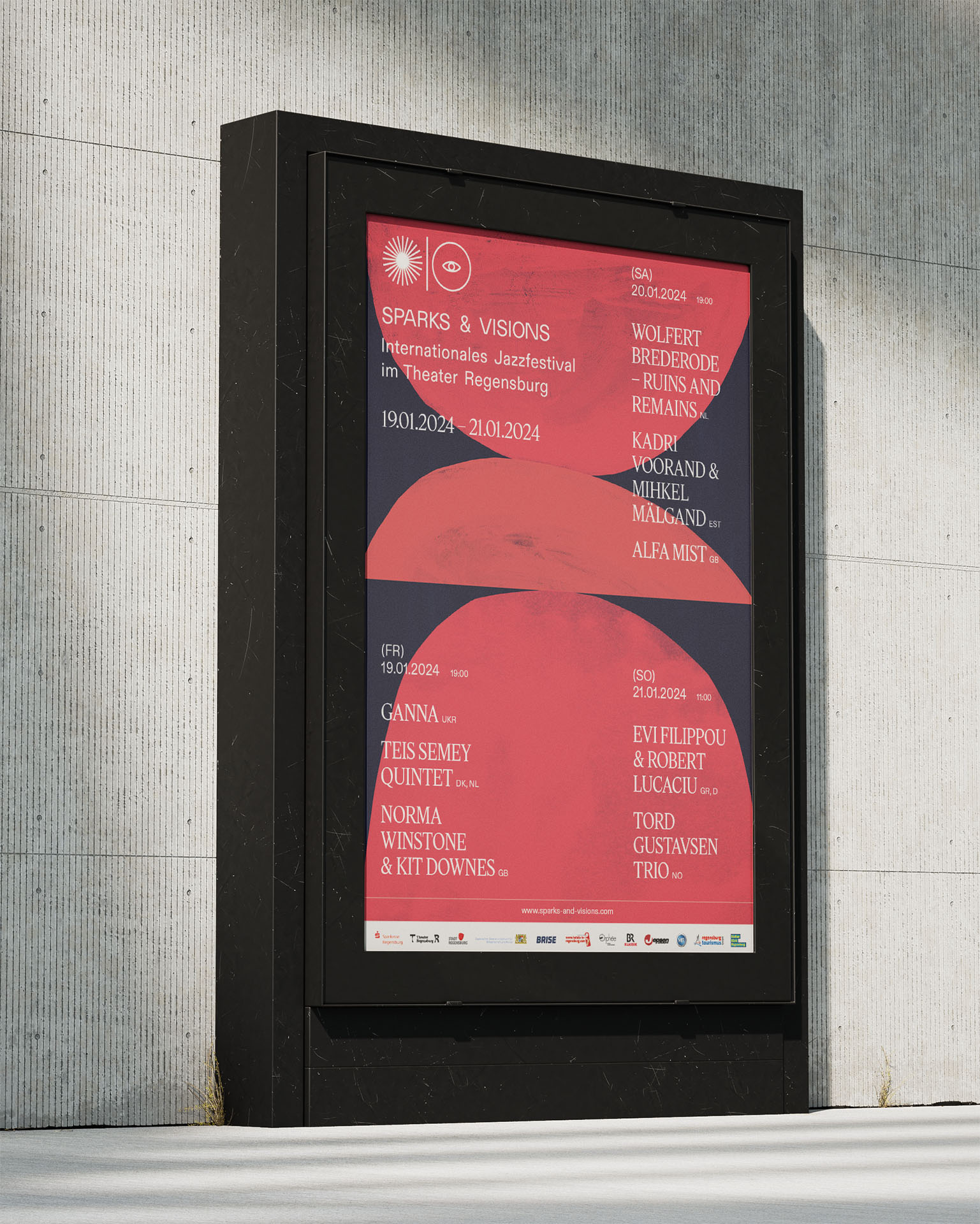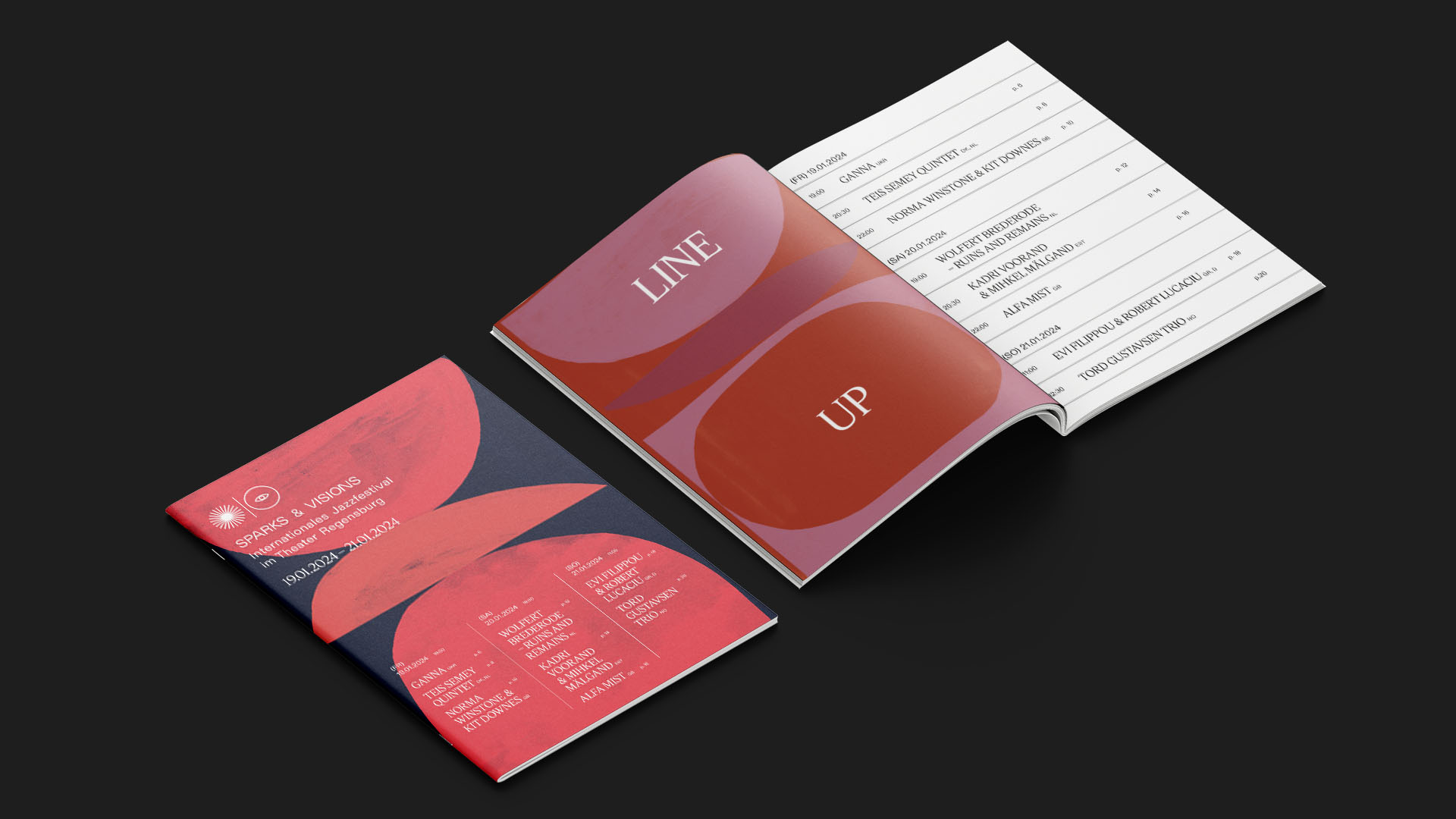 We developed the full corporate identity for Sparks & Visions—from logo and typography to website, print, and social media. Yes, even flags, spread all over the beautiful old town of Regensburg (which is worth a trip any time, jazz or no jazz). We had a lot of fun experimenting with bold shapes, playful layouts, and an animated logo. And we were lucky: the lineup included artists we personally love, like Kamaal Williams and Alfa Mist.